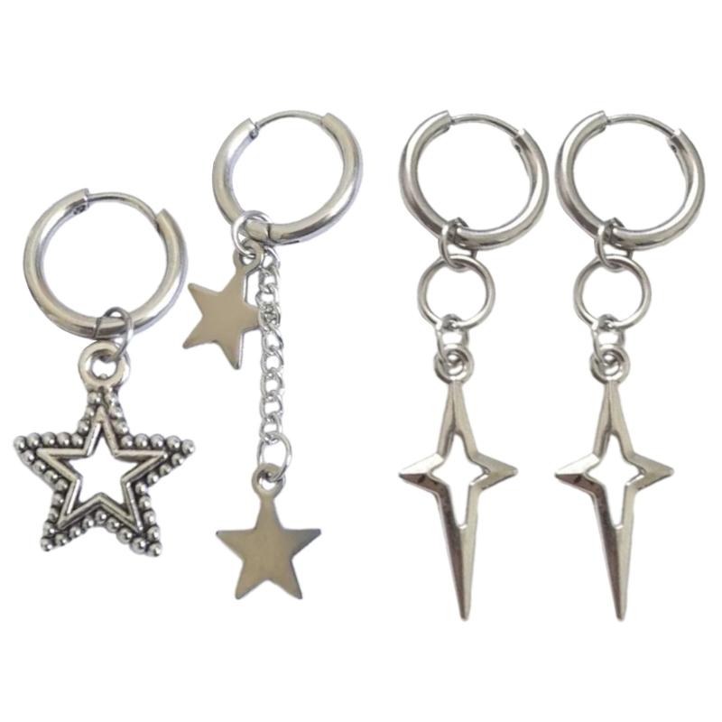 Gothic Punk Style Earrings Metal Drop Earrings Silver Color Star Crosses Pendant