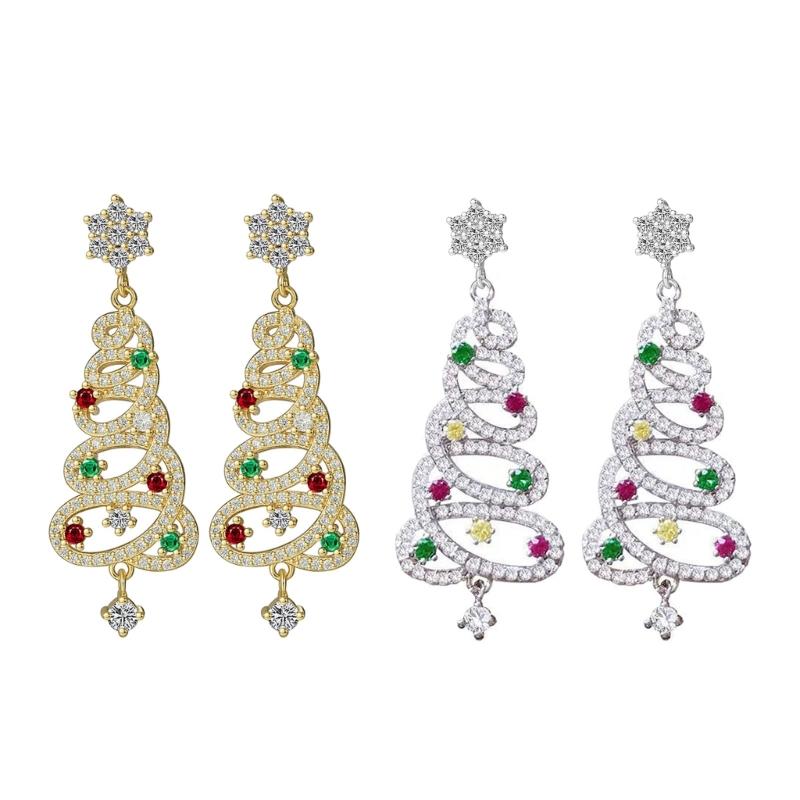 Korean Zircon Christmas Tree Earrings Rhinestone Crystal Star Drop Earring Gift