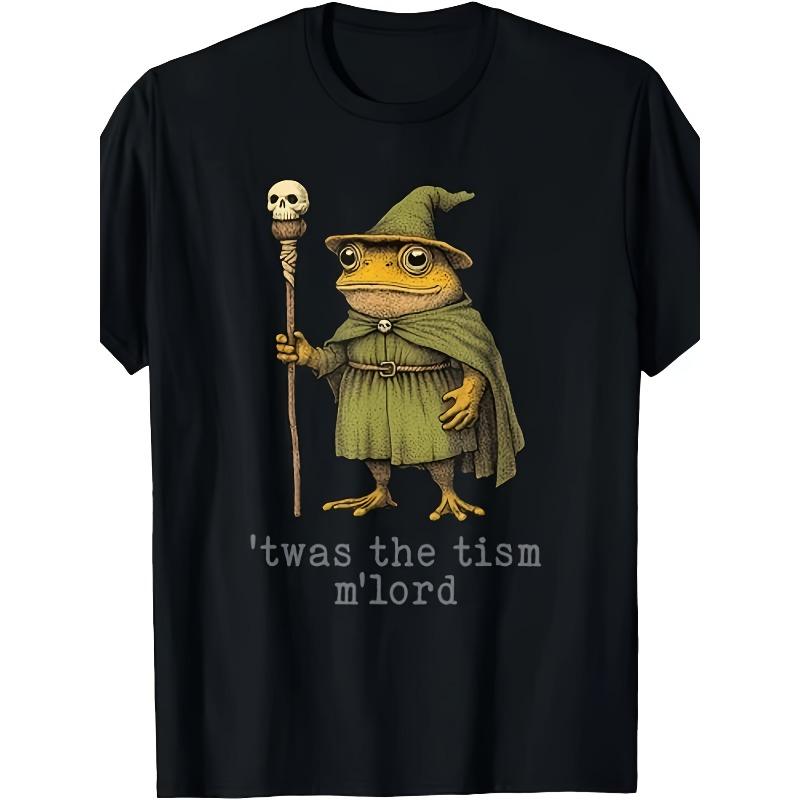 European Sizes Funny Wizard Frog Witch T-Shirt with "Twist the Tism M'Lord" Graphic - Green Wizard Frog In Hat - Soft Opaque Fabric