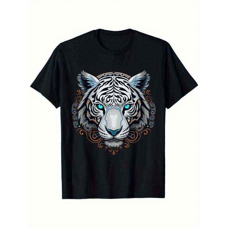 European Sizes Black Tiger Graphic T Shirt Men Women Classic Crewneck Short Sleeve Animal Print Tee Casual Daily Streetwear Fashion Top