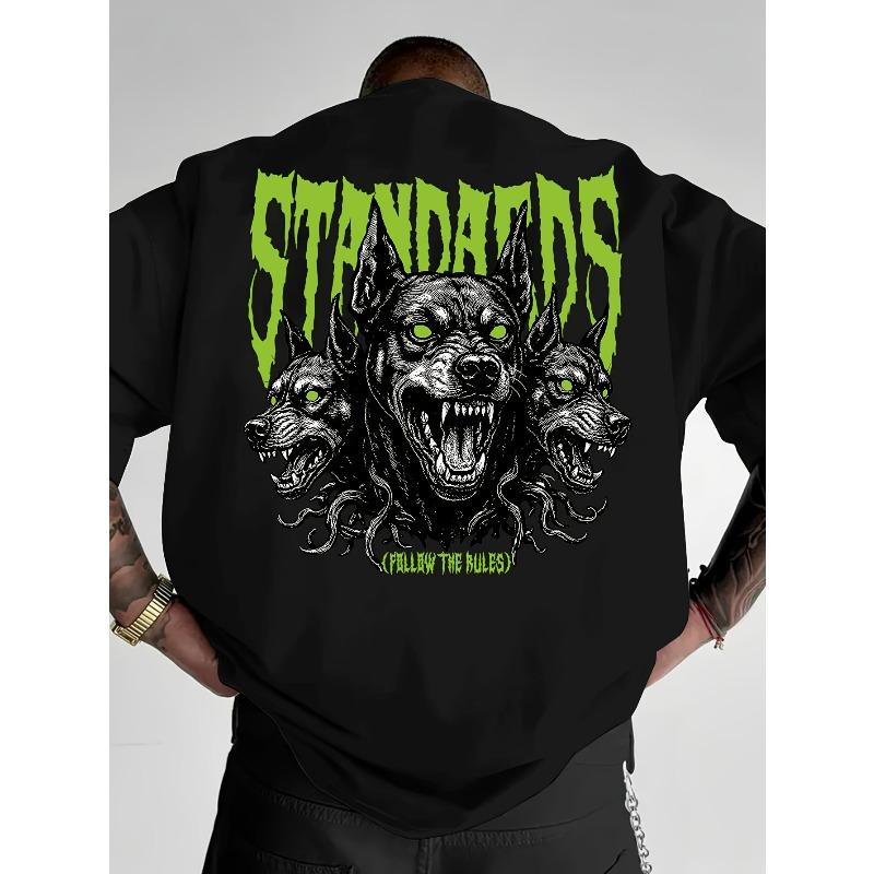 European Sizes Men'S Streetwear Graphic T-Shirt - "Standards" Design with Wolf & Skull Print, Loose Fit Round Neck Tee