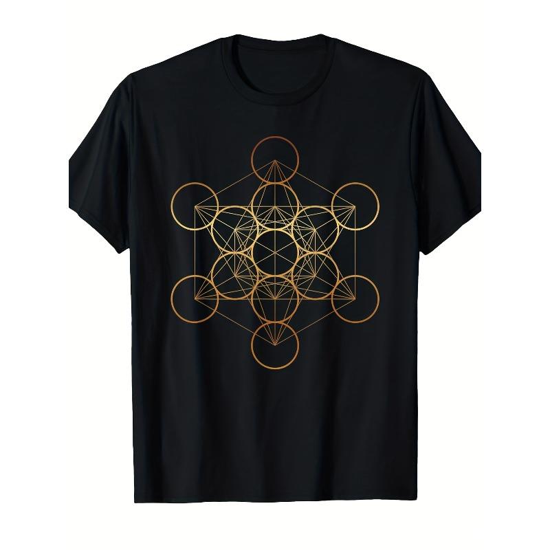 European Sizes Men's Sacred Geometry T-Shirt with Metatron's Cube & Fruit of Life Design - Comfortable Casual Fit Short Sleeve Tee for Math