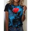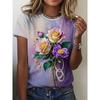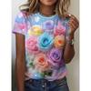 Ladies Summer Colorful Dazzling Flowers Printed Large Loose Casual T-shirt Fashionable Comfortable Soft Breathable Short Sleeved T-shirt