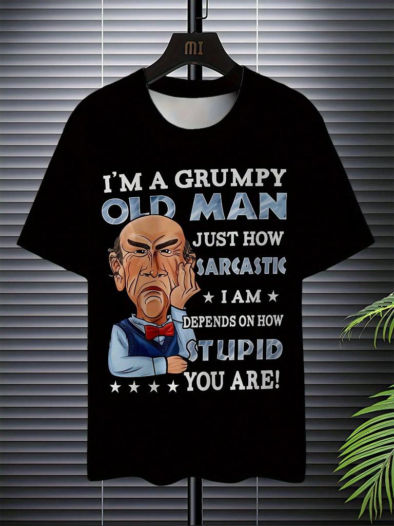 Mens Humorous 3D Digital Print TShirt Grumpy Old for Man Sarcastic Quote Casual Crew Neck Short Sleeve Machine Washable