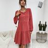 Women's Pleated Loose Long-sleeved Cotton and Linen Red Dress