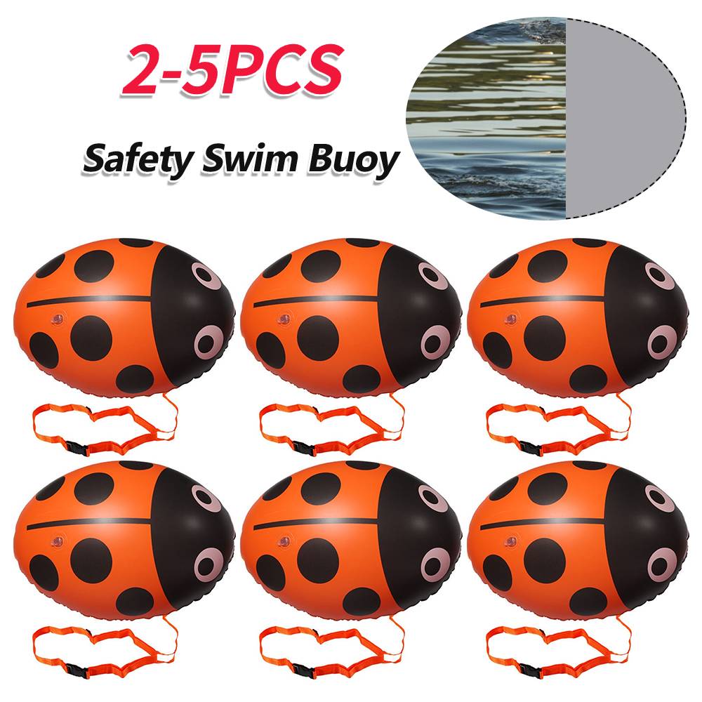 2-5PCS Swimming Buoy Bag Inflatable Ladybug Swim Float Bag Floating Multifunctional with Waist Belt Adjustable for Sports