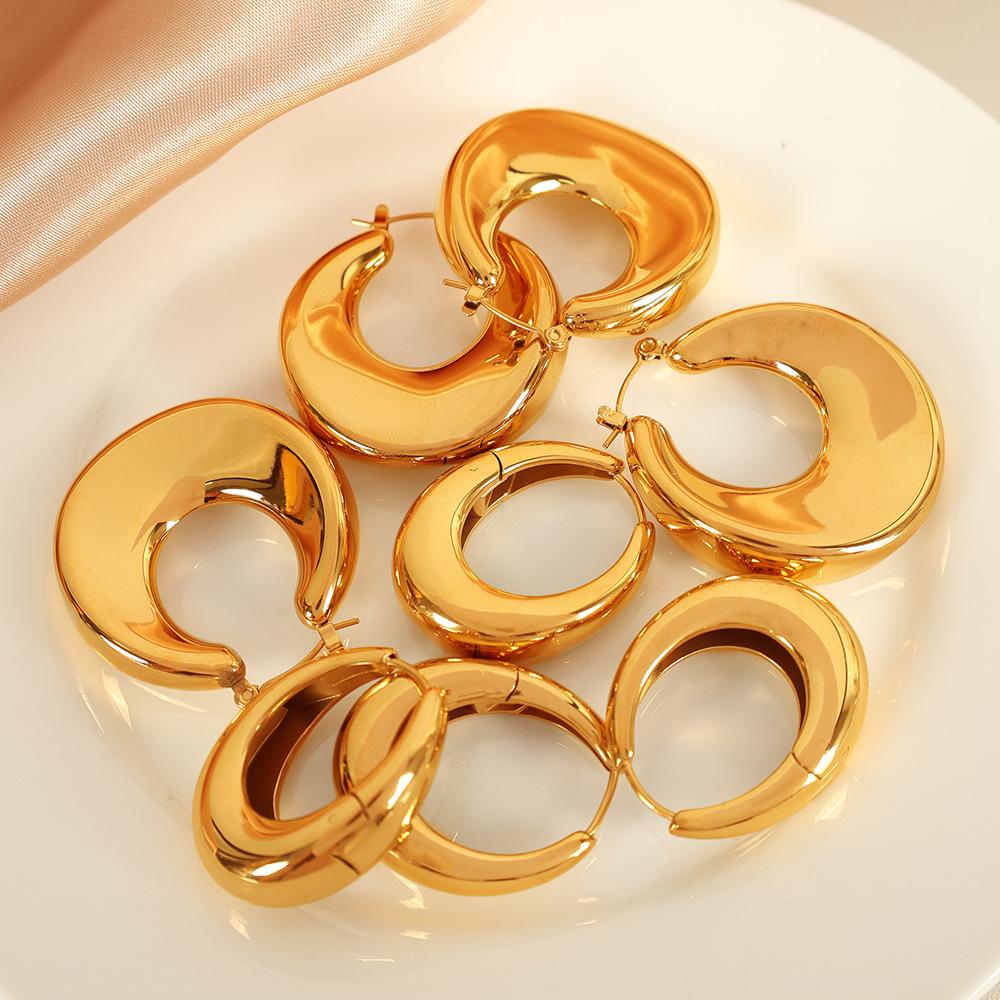 European and American Simple Design Versatile Earrings 18K Gold-plated Stainless Steel Geometric U-shaped Earrings Personalized Women