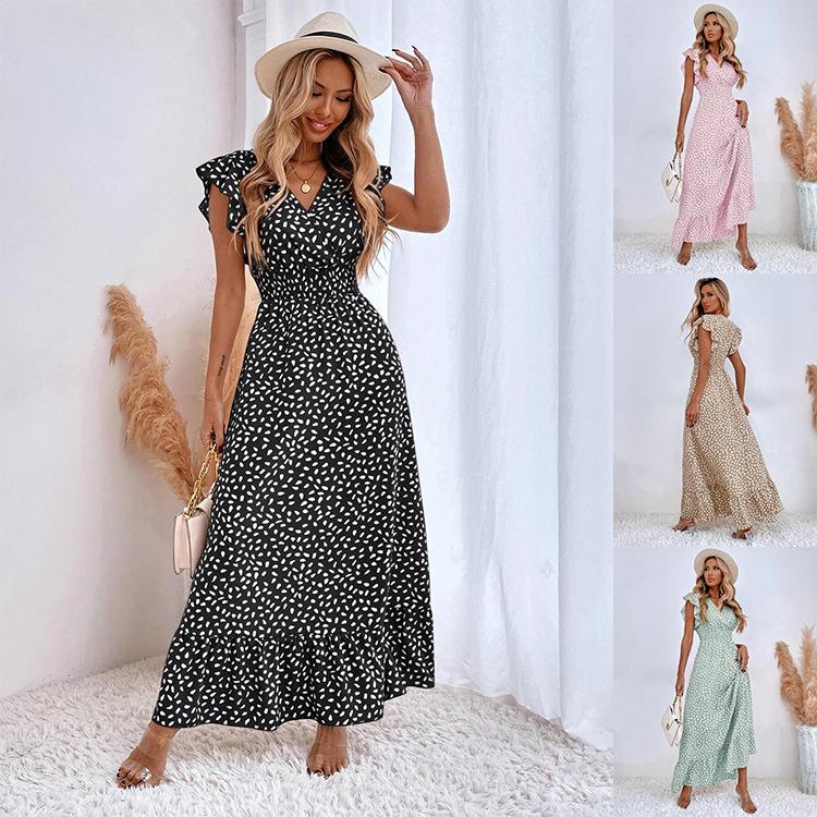 This elegant long dress is designed for the modern European and American woman seeking both style and comfort. Crafted from high-quality polyester, it features a flattering V-neckline and a waist-hugging silhouette that enhances your natural curves. The ruffle details add a touch of femininity, making it a perfect choice for both spring and summer occasions. Whether you're attending a garden party or a casual outing, this dress offers a blend of sophistication and casual charm.