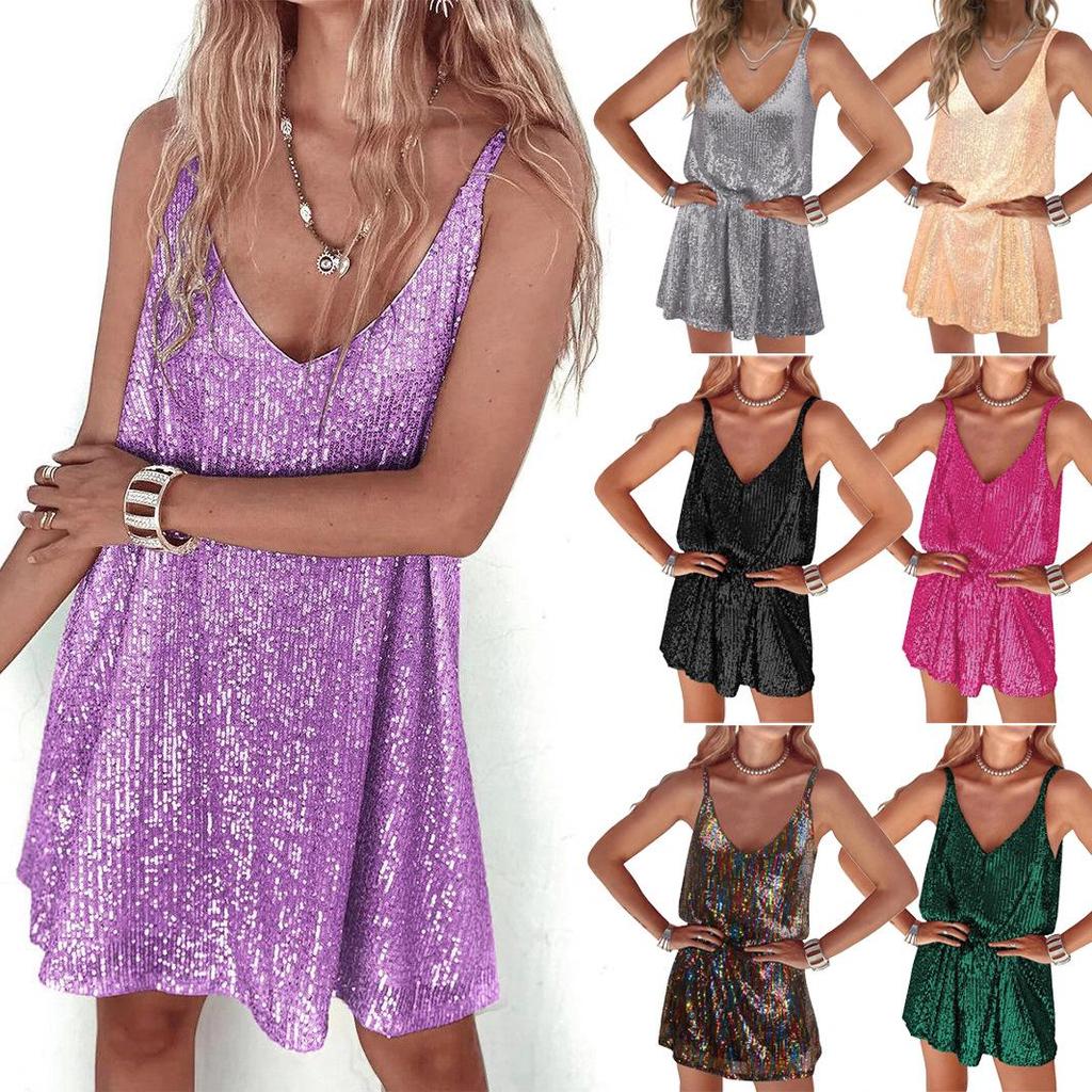European & American V-neck Sequin Sling Dress for Women - Sexy Nightclub Style