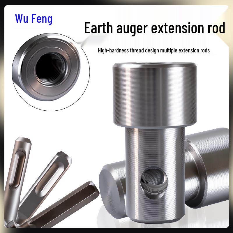 Earth Auger Hammer Drill Adapter: Square & Round Shank, Hex Electric Wrench Compatible, 1/2" Head, Universal Extension Rod.