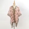 Vintage Print Chiffon Shawl Pearl Scarf Women Sun Protection Scarves Summer Beach Multifunctional Silk Scarf 150*100Cm