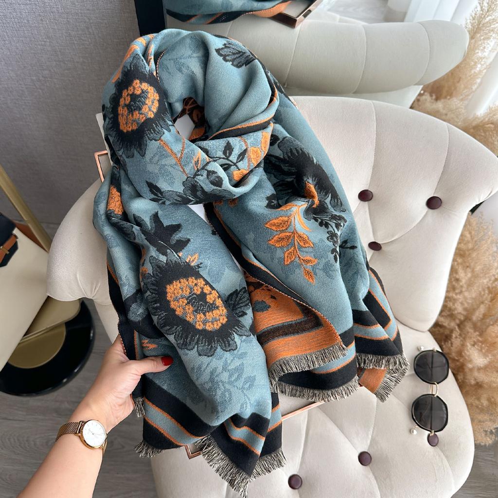 Elegant Flowers Jacquard Pashmina Imitation Cashmere Scarf Winter Thick Warmth Two-Sided Shawl Coldproof Windproof Blanket Scarf