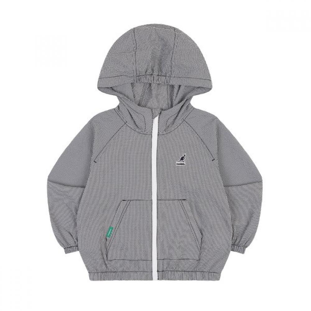 [Gangnam] Seersucker Check Windbreaker RB 0201 Black is designed as a lightweight windbreaker for children. It features a stylish check pattern design and is suitable for summer or light outings. This product offers the utmost comfort with its lightweight construction, considering activity levels.