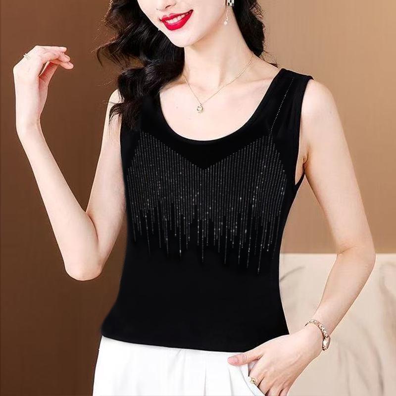 Women's Rhinestone Spaghetti Strap Tank Top - Plus Size Sleeveless Slimming Summer Layer