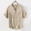 Men's Casual Stand Collar Pullover Shirt Retro Thin Cotton Linen T-shirt Top