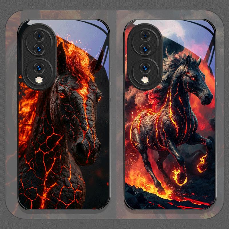 Creative Flame Black Horse Pattern Tempered Glass Phone Case for Huawei Honor 400 200 Lite 100 Pro 90 GT Magic 7 6 X8 X9 Covers