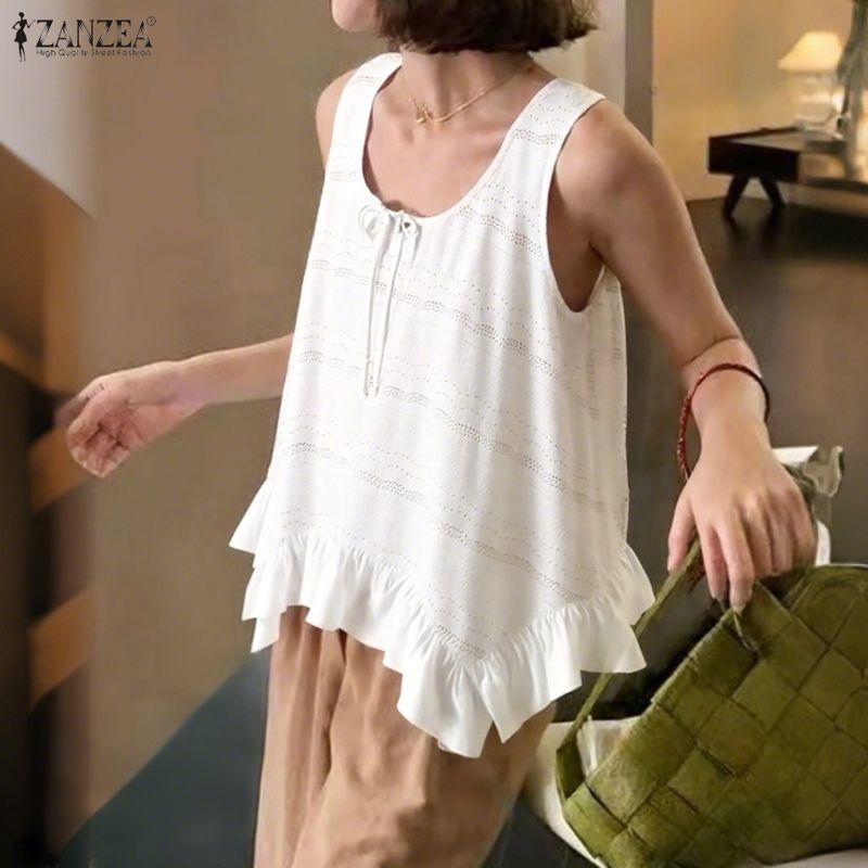 ZANZEA Women Casual Round Neck Summer Sleeveless Tank Tops