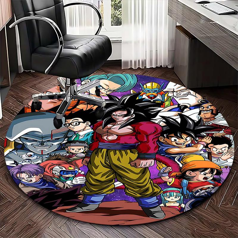 1pc Dragon Ball Z Characters Anime Cartoon Design Round Carpet Office Chair Mat NonSlip Rug Suitable for Home Decor Living Room Bedroom Game