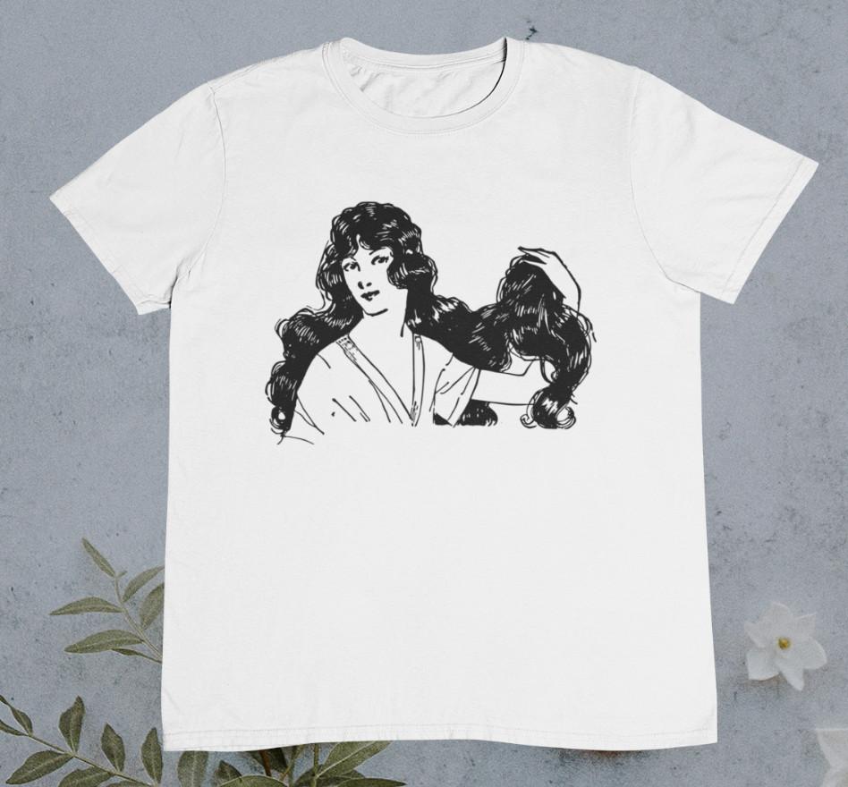 Vintage Elegant Lady With Curly Hairs T Shirt %100 Premium Cotton Unisex T-Shirt