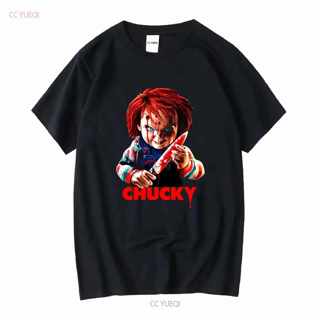 Chucky Bloody Knife Childs Play Halloween T SHIRT US Size Xmas Vintage Washed Streetwear Stretched Unisex Casual Soft Stylish