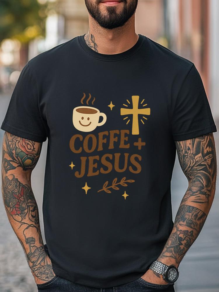 Coffee and Jesus T-Shirt Christian Morning Graphic Tee Faith and Caffeine Lover Unisex T-Shirt