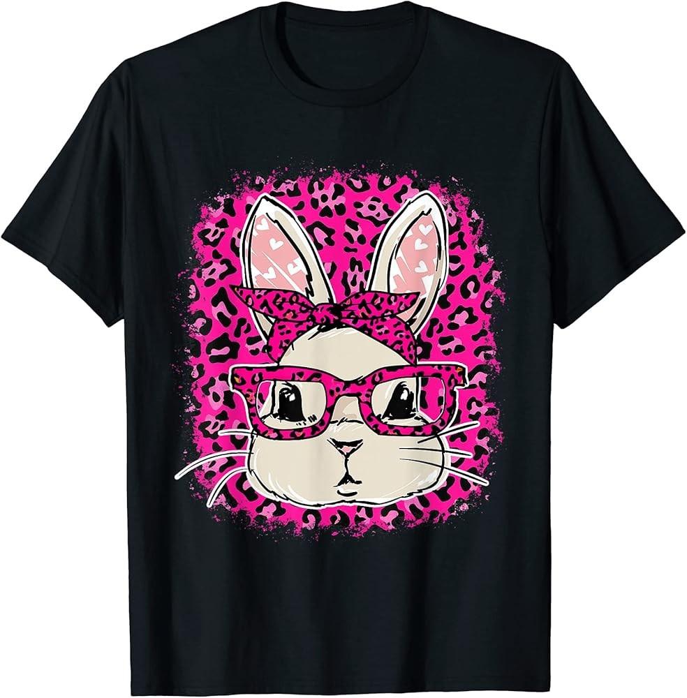 Bunny Leopard Pink Wearing Glasses Happy Easter Day Bleached T-Shirt Unisex T-Shirt