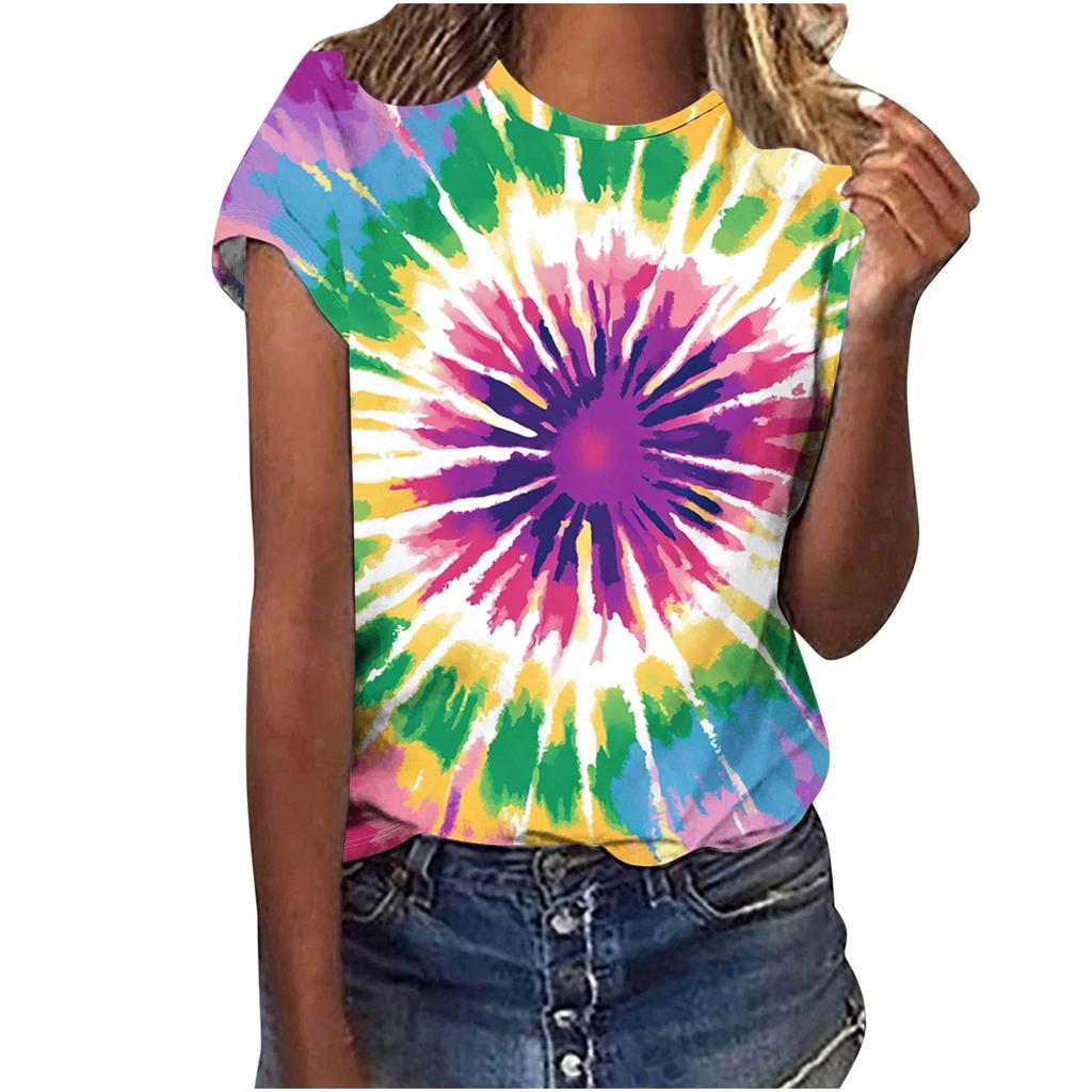 New Colorful Tie Dye 3D Print T-Shirts Women Summer O-Neck Short Sleeve T Shirt Y2k Harajuku Tees Streetwear Top Female Clothing