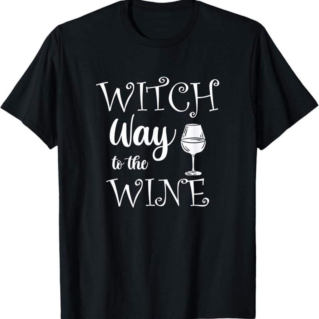 Funny Witch Way To the Wine TShirt Witch Coven Costume Party Outfit Wine Lover Gift with Witch Wine Graphic