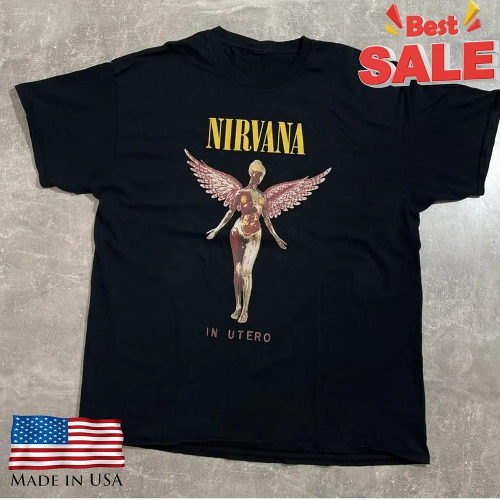 In Utero Nirvana Inspired T Shirt White Angel Graphic Tee 90s Grunge Rock Style Unisex T-Shirt