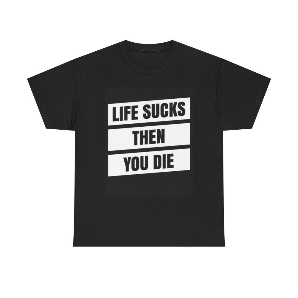 Life Sucks Then You Die Graphic T Shirt Funny Jokes Humor Unisex Heavy Cotton Unisex T-Shirt