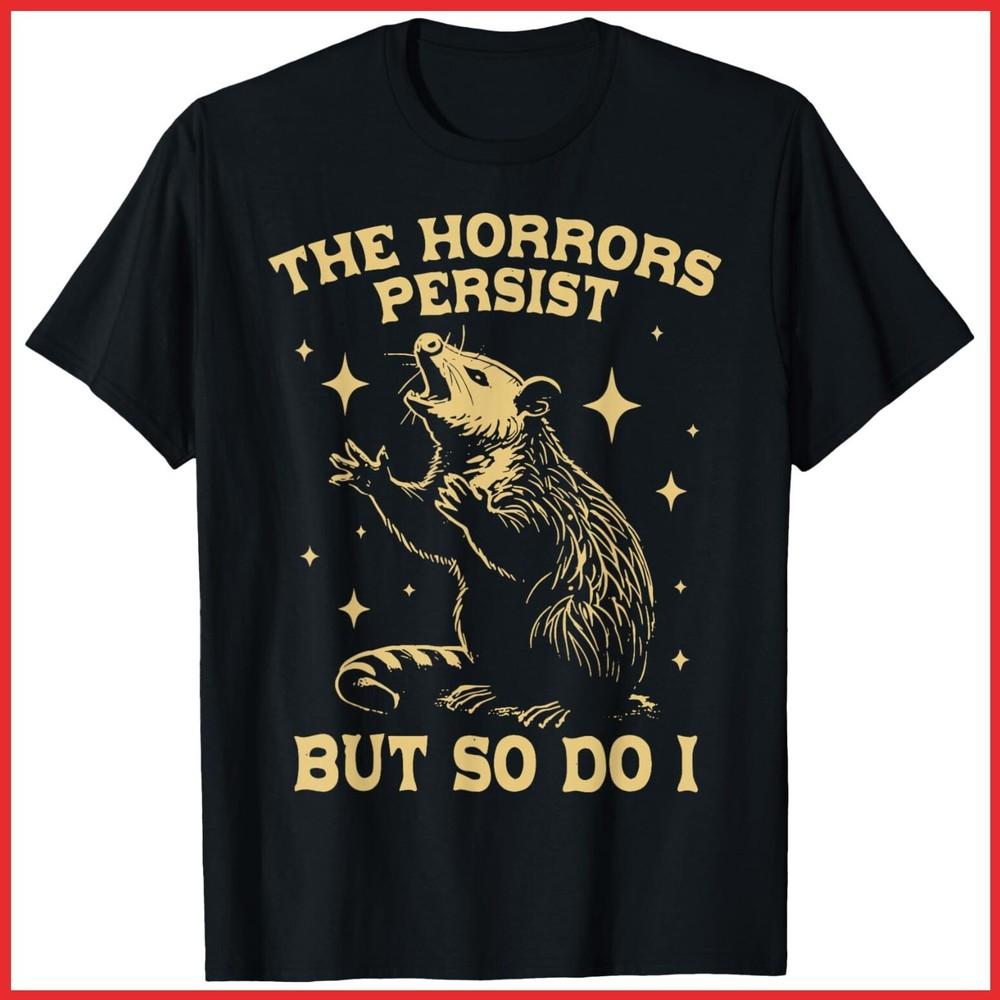 The Horrors Persist But So Do I Funny Angry Opossum Possum Black Cotton T-Shirt Unisex T-Shirt