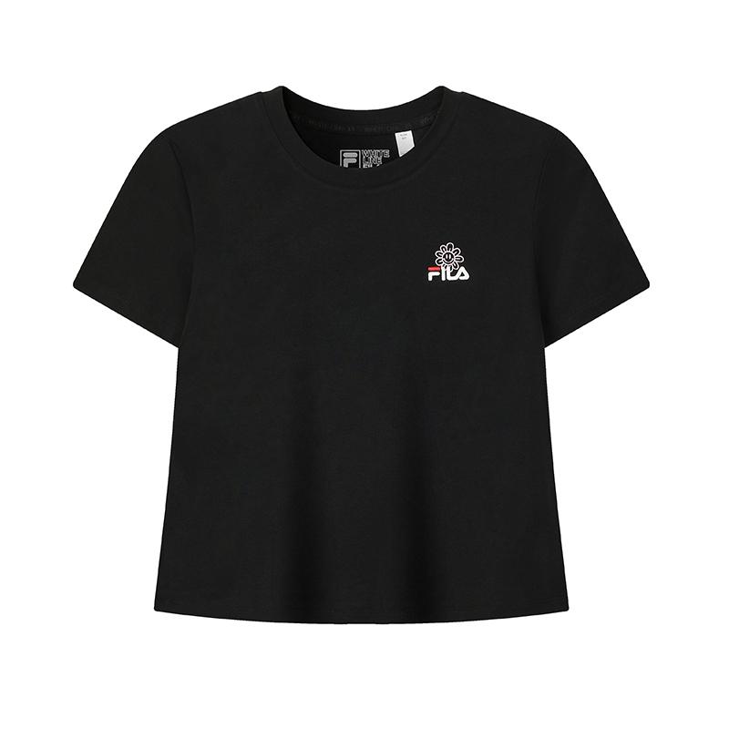 Fila Original Floral Short Sleeve T-Shirt Fashion Classic Retro Casual Versatile Comfortable Embroidered Logo Cotton Slim Fit Crew Neck F51W629103FBK