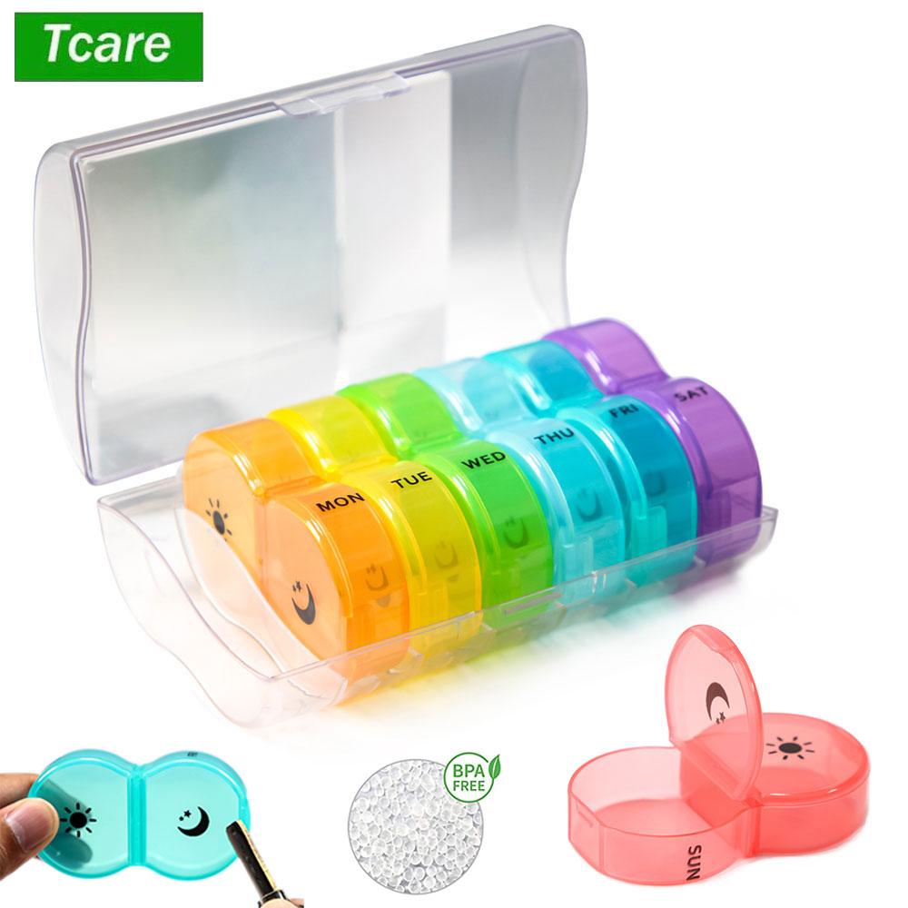 Portable Weekly 7 Days Pill Box Colorful Stackable 2 Times A Day Medicine Organizer Plastic Storage Box