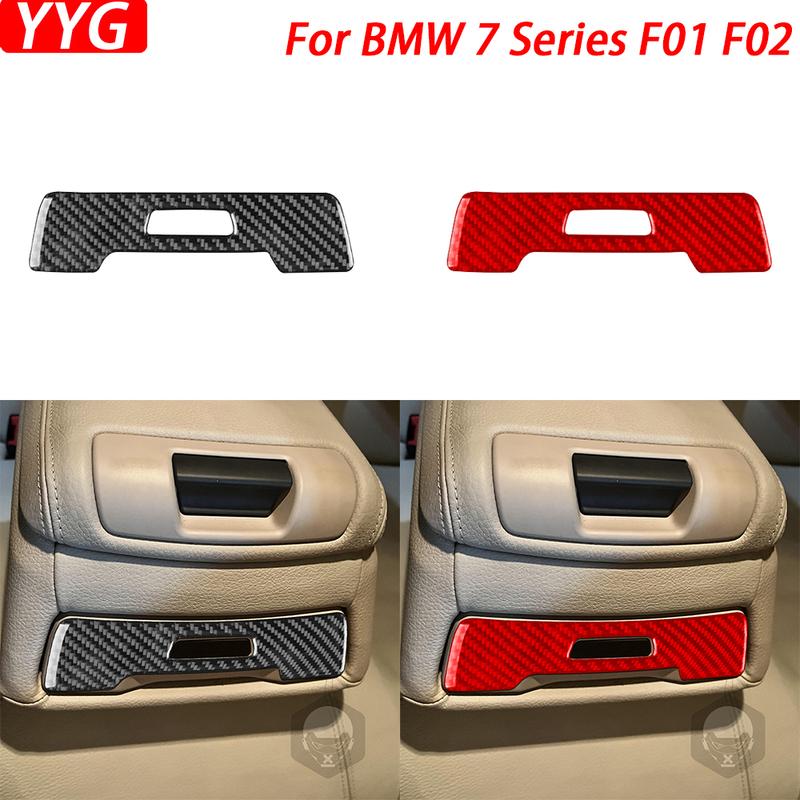 For BMW 7 Series F01 F02 2009-2014 Carbon Fiber Rear Water Cup Holder Switch Panel Trim Cover Car Interior Accessories Sticker