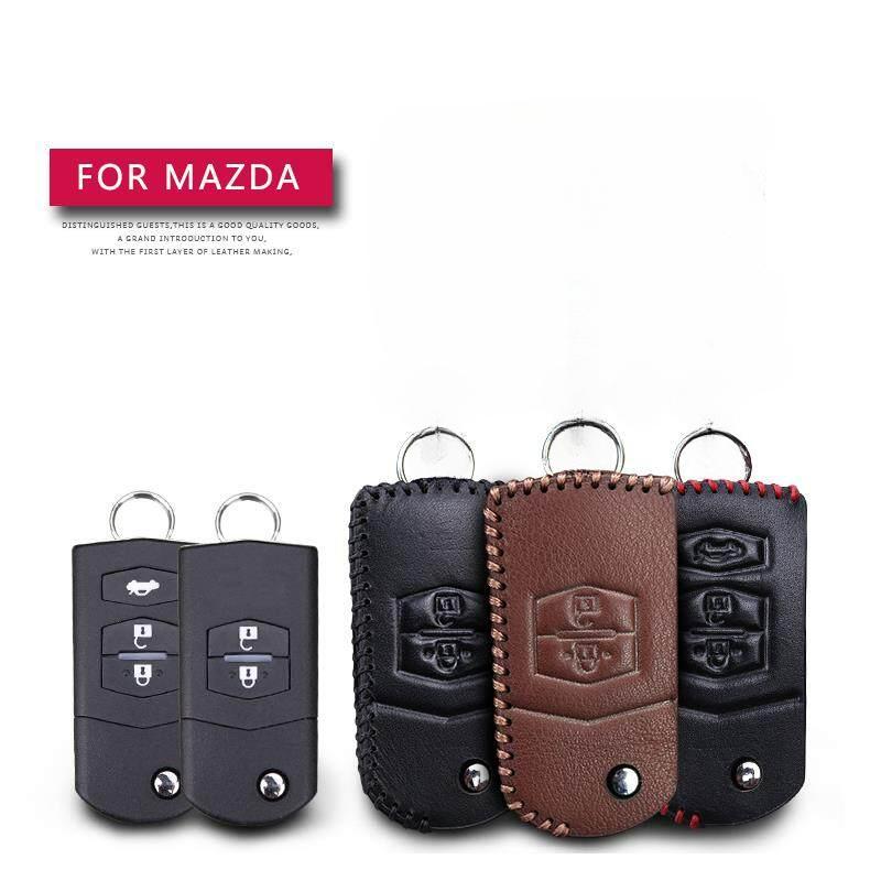 Leather Folding Car Key Fob Shell Cover Case Bag Protection For Mazda 2 Demio 3 5 6 CX7 CX9 RX8 MX5 Flip Remote Holder Protector