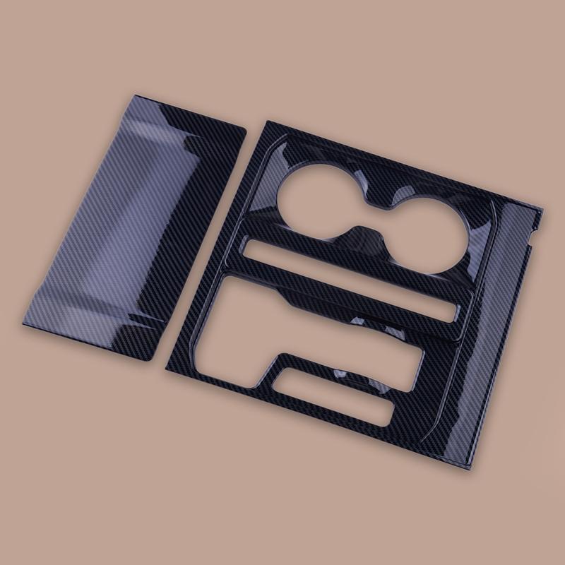 Center Console Gear Shift Box Water Cup Holder Panel Cover Trim Black Carbon Fiber Style Fit for Ford F-150 - LHD