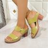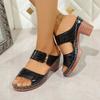 Women'S Patterned Leather Chunky Heel Sandals With Flat Sandals For Women Ladies Summer Dress Sandals Shoes For Women