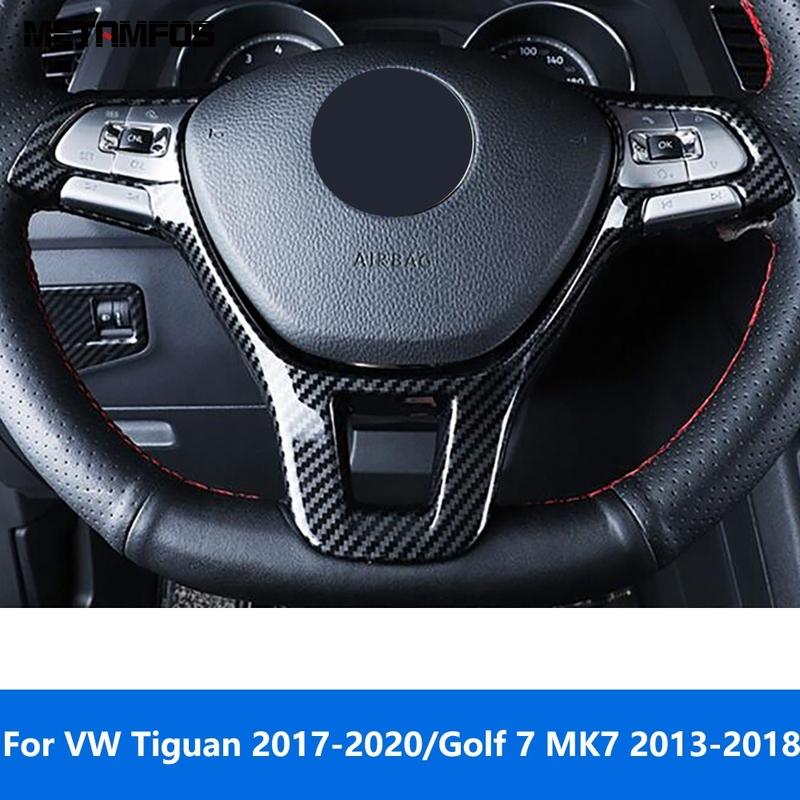 For Volkswagen VW Tiguan 2017-/Golf 7 MK7 2013-2018 Carbon Fiber Steering Wheel Cover Trim Decoration Interior Accessories
