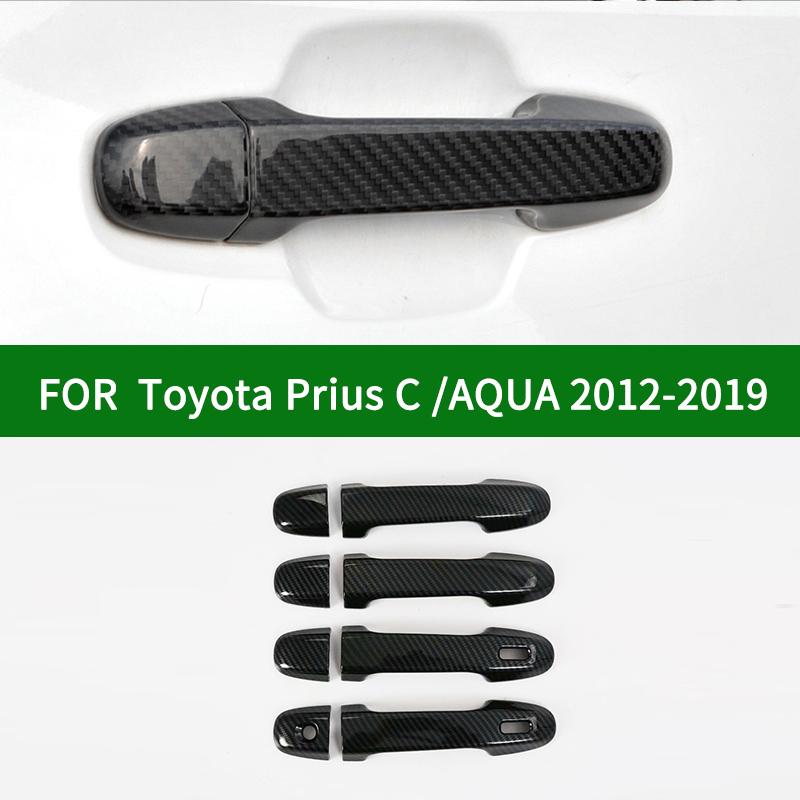 For TOYOTA Prius C AQUA Hybrid 2012- Black Carbon Fiber Car Door Handle Cover Bezel Trim 2013 2014 2015 2016 2017 2018