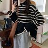 Korean Turtleneck Long-sleeve Knitted Pullover Women's Autumn Winter Loose Color Blocked Stripes Sweater Jacket Y2k Top Female