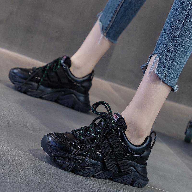 Black Sneakers Women's Dad Shoes Autumn Pair of Shoelaces Versatile Smart Smoked Shoes Increase Height