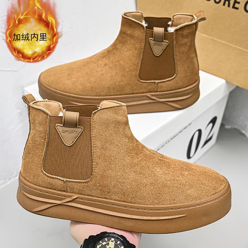 Winter New Snow Boots Men Go Out Versatile High-top Cotton Shoes Velvet Warm Non-slip Lazy Cotton Boots Men
