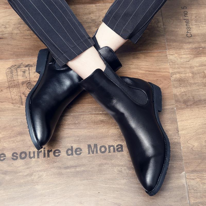 English Chelsea Boots Autumn Winter Martin Short Boots Hairstylist Pointed Boots High Top Leather Shoes