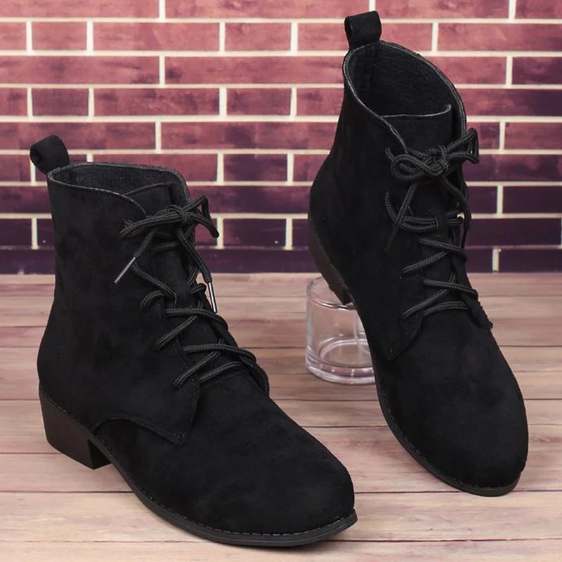 Autumn Winter Faux Suede Ankle Boots Women Retro Black Lace Up Boots Woman Plus Size 36-43 Pointed Toe Booties Female