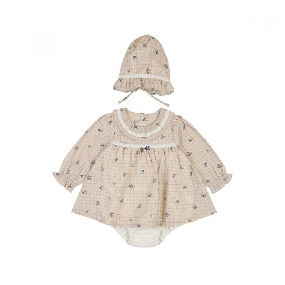 The Etwa Adeline Check Bodysuit SET (Model: 07T127984) consists of a baby bodysuit and pants. It features a beige check pattern and is made from soft materials, suitable for baby innerwear and outerwear. It can be easily worn with a snap button at the back and has a convenient pop-over style.