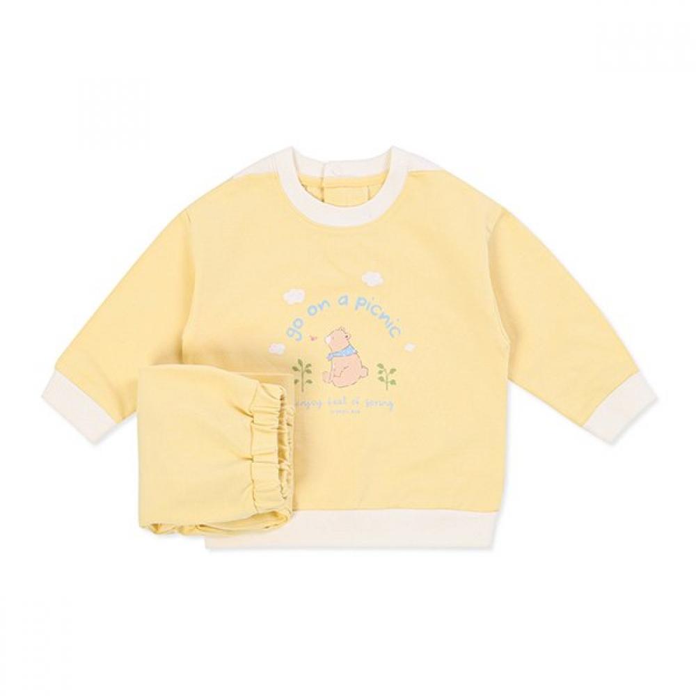 Organic Mom Yellow Mini Training Wear MLSLEJ02 is a training set designed for infants that provides comfortable wear. Made from soft fabric, it is gentle on the skin and breathable, making it suitable for indoor activities or home wear.