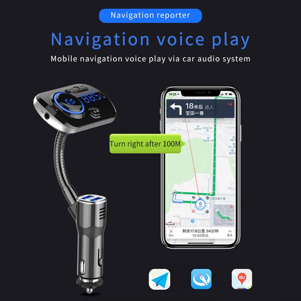 12V 24V Car Bluetooth-compatible Mp3 Hands-Free Player Qc3.0 Fast Charger Fm Transmitter Ambient Light Navigation Voice Prompts