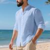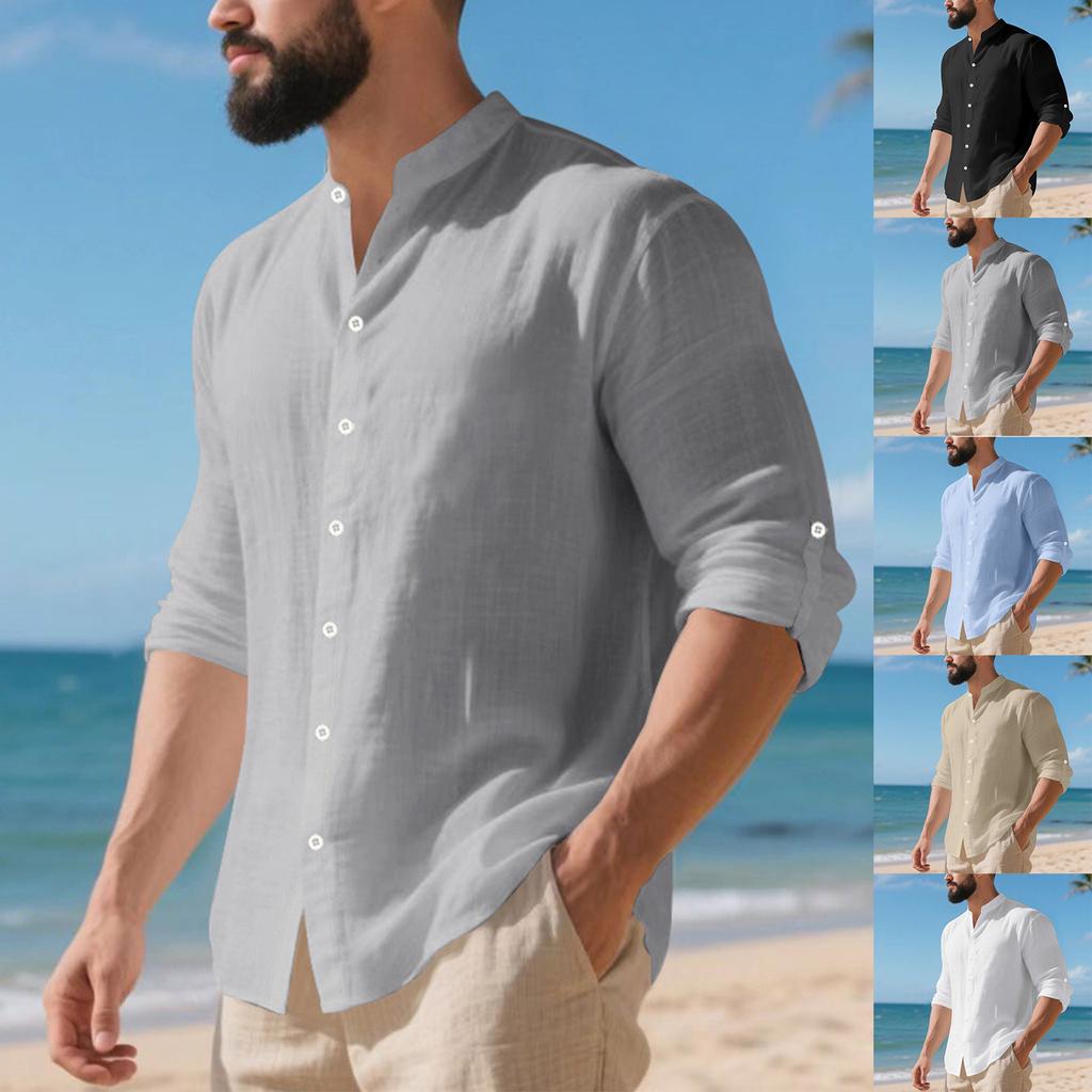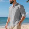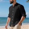 Men's Linen Button-down Shirt, Beach Shirt, Long-sleeved Plain-colored Stand-up Collar, Spring Casual Everyday Wear