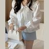 Korean Version Women's Doll Collar Long Sleeved Shirt Fungus Edge Temperament White Shirt