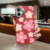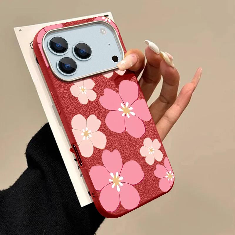 For iPhone 17 Pro Max Case Fresh Style Cherry Blossom Pattern Leather Texture Soft Silicone Cover For iPhone 16 15 14 13 Pro 12 11 16E Air